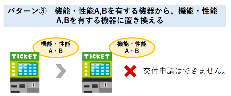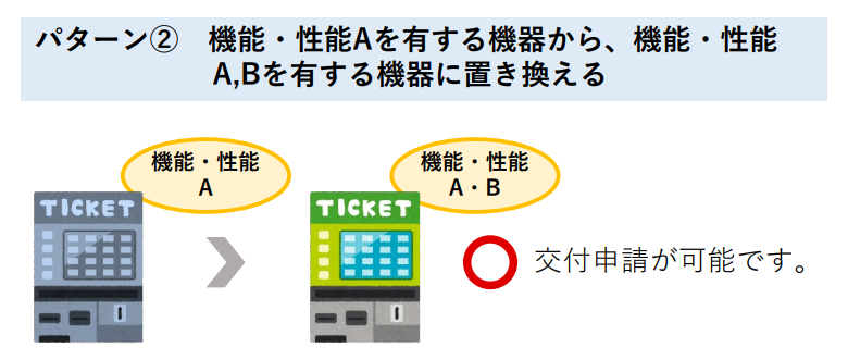 そして、買い替えが可能になる条件とは、「新しく設置する券売機」が「もともと設置していた券売機」にない機能を持っていることです。